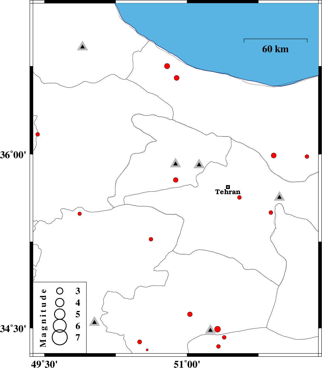 | 2014/10/05 | 09:43:43.9 | 13:13:43.9 | 35.98 | 52.26 | 6 | ML1.8 | Mazandaran Province, 33 km North-East of Damavand | ||