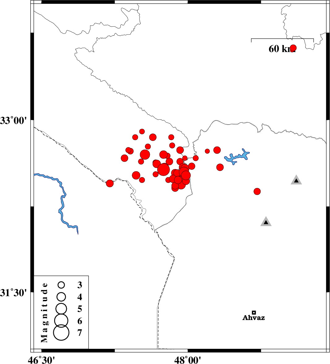 2014/10/05 | 18:31:10.9 | 22:01:10.9 | 32.59 | 47.76 | 18 | ML4 | Ilam Province, 48 km South-East of Dehloran | ||