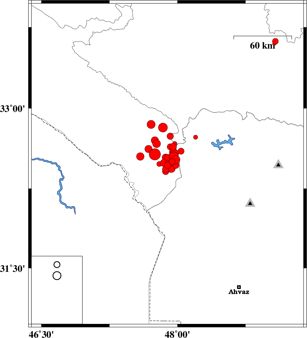 | 2014/10/15 | 14:12:05.3 | 17:42:05.3 | 32.5 | 47.92 | 17 | ML3.6 | Ilam Province, 41 km West of Andimeshk | ||