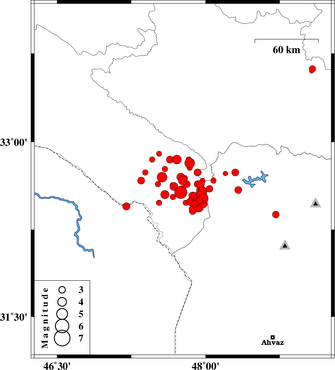 | 2014/10/15 | 13:35:55.4 | 17:05:55.4 | 32.57 | 47.75 | 18 | ML5.6 | Ilam Province, 48 km South-East of Dehloran | ||