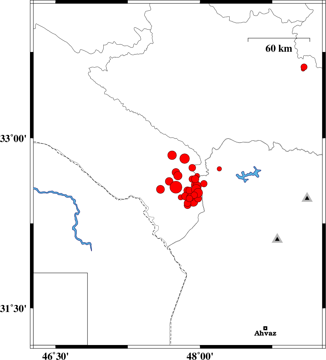 | 2014/10/15 | 14:12:05.3 | 17:42:05.3 | 32.5 | 47.92 | 17 | ML3.6 | Ilam Province, 41 km West of Andimeshk | ||