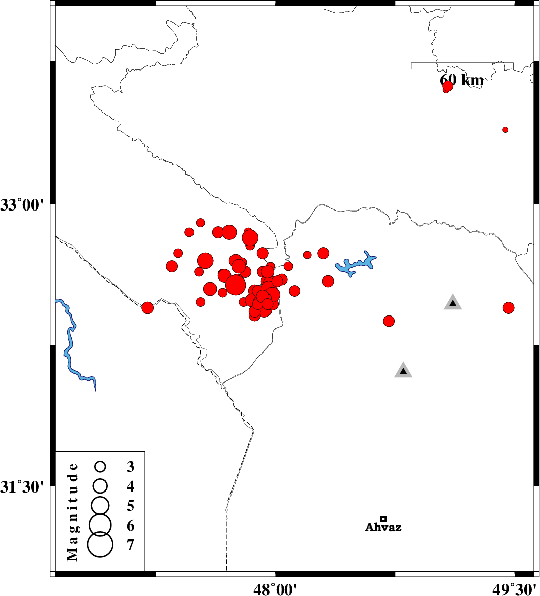| 2014/10/15 | 14:12:05.3 | 17:42:05.3 | 32.5 | 47.92 | 17 | ML3.6 | Ilam Province, 41 km West of Andimeshk | ||