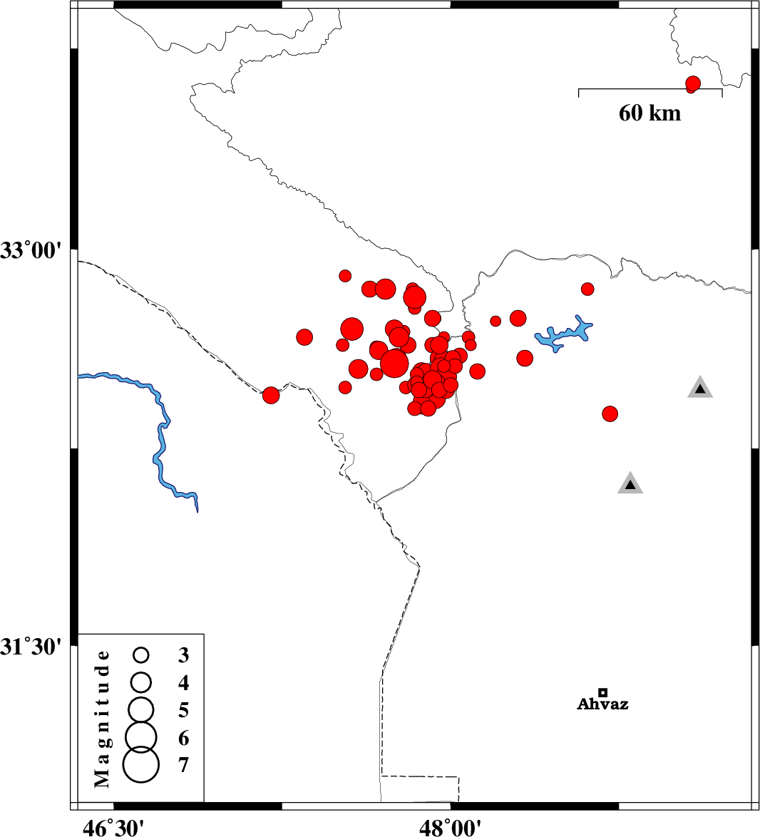 | 2014/10/15 | 14:12:05.3 | 17:42:05.3 | 32.5 | 47.92 | 17 | ML3.6 | Ilam Province, 41 km West of Andimeshk | ||