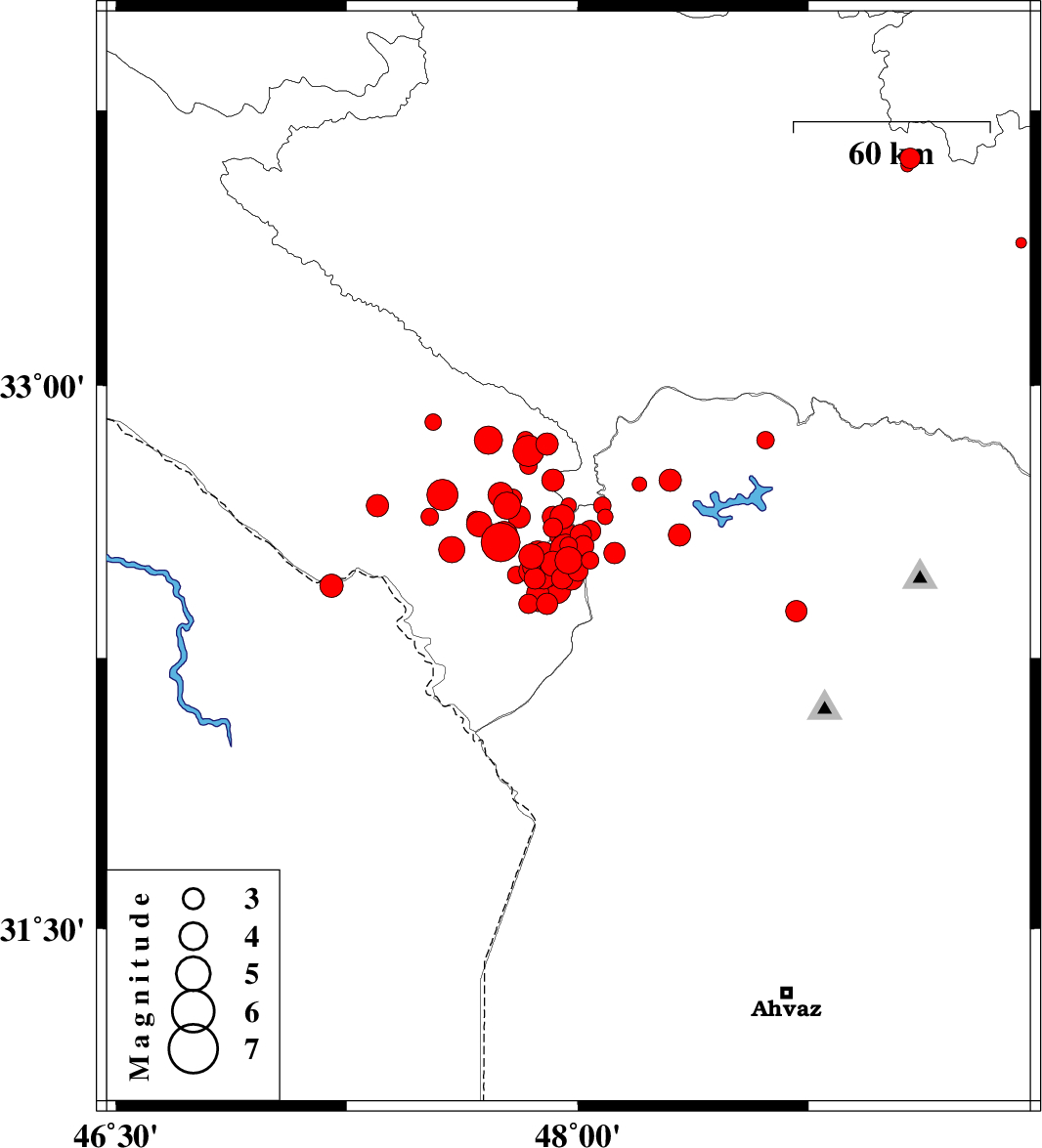 | 2014/10/15 | 13:35:55.4 | 17:05:55.4 | 32.57 | 47.75 | 18 | ML5.6 | Ilam Province, 48 km South-East of Dehloran | ||