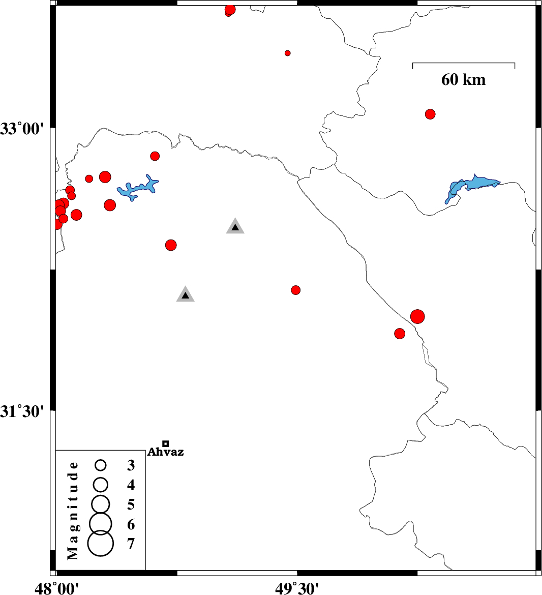 | 2014/09/20 | 13:59:34.7 | 18:29:34.7 | 32.59 | 48.33 | 14 | ML3.3 | Khoozestan Province, 15 km North of Andimeshk |