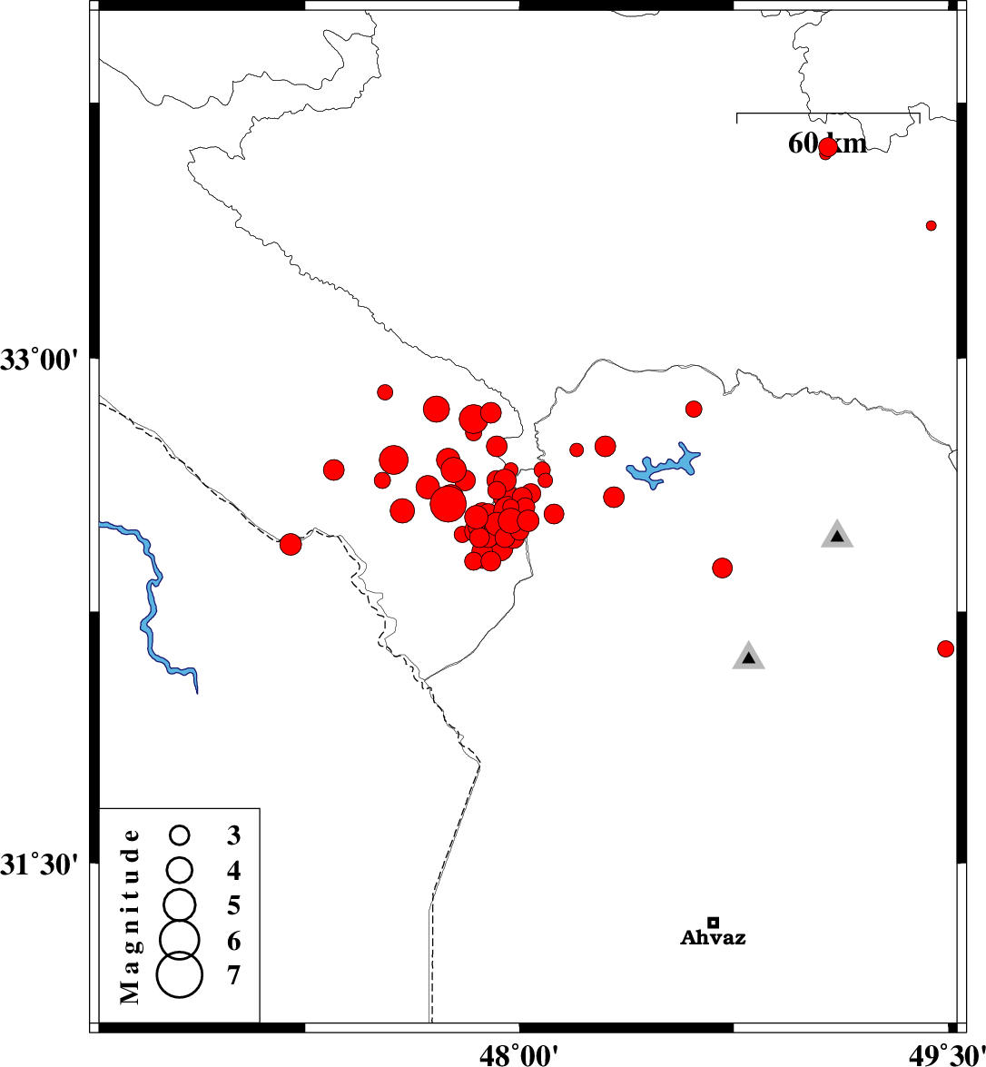 | 2014/10/15 | 14:12:05.3 | 17:42:05.3 | 32.5 | 47.92 | 17 | ML3.6 | Ilam Province, 41 km West of Andimeshk | ||