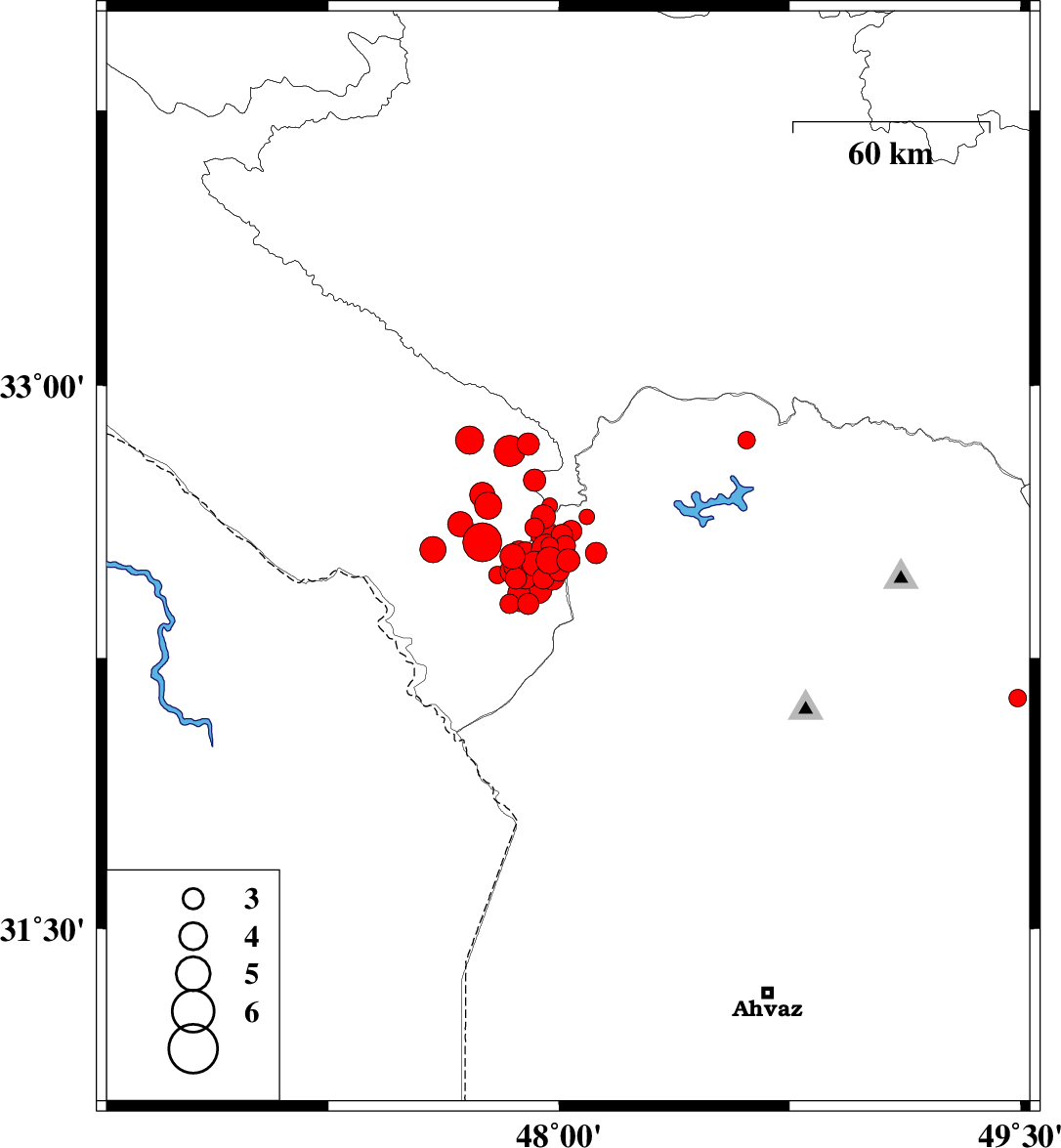 | 2014/10/15 | 13:35:55.4 | 17:05:55.4 | 32.57 | 47.75 | 18 | ML5.6 | Ilam Province, 48 km South-East of Dehloran | ||