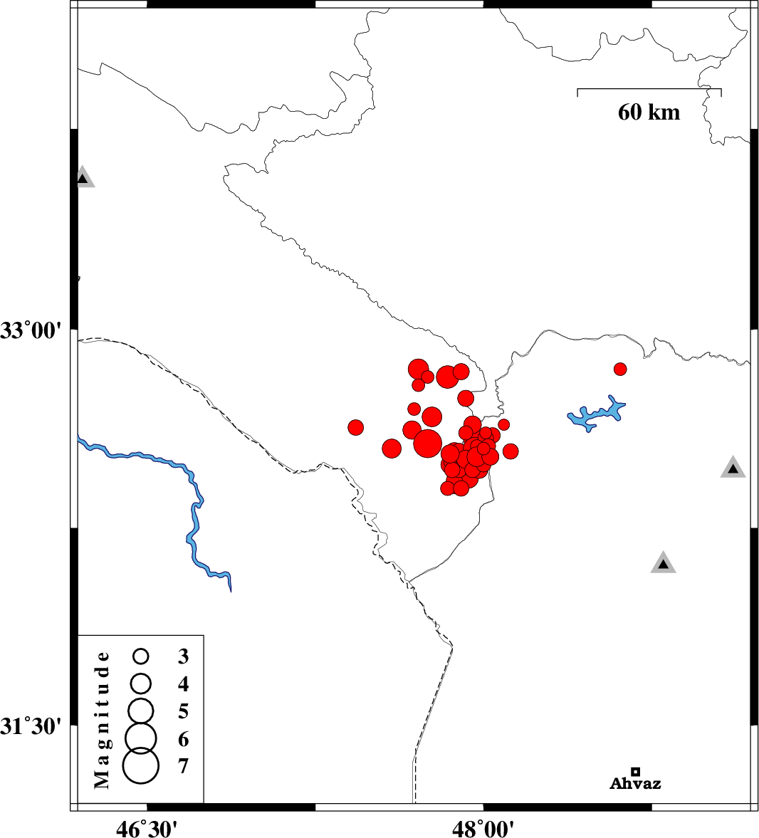 2014/10/15 | 13:35:55.4 | 17:05:55.4 | 32.57 | 47.75 | 18 | ML5.6 | Ilam Province, 48 km South-East of Dehloran | ||