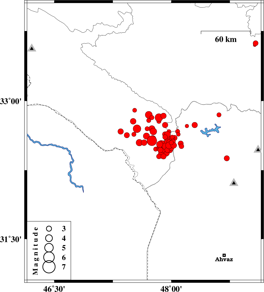 2014/10/15 | 15:15:49.8 | 18:45:49.8 | 32.74 | 47.92 | 14 | ML3.2 | Ilam Province, 50 km South-East of Pol-e dokhtar | ||