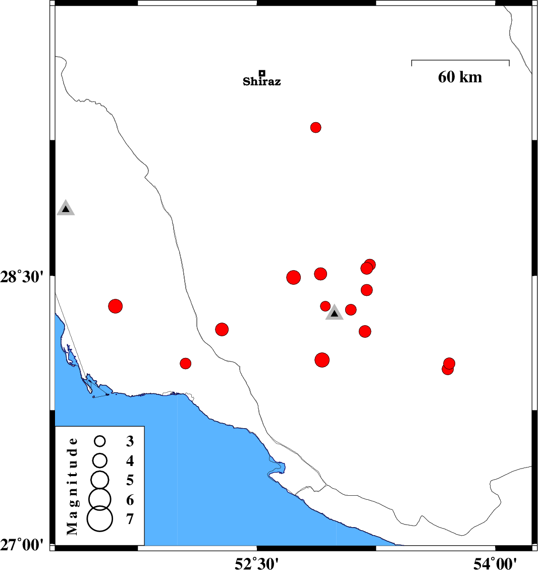 2014/10/06 | 01:48:20.6 | 05:18:20.6 | 29.32 | 52.87 | 14 | ML3 | Fars Province, 62 km South of Marvdasht | ||
