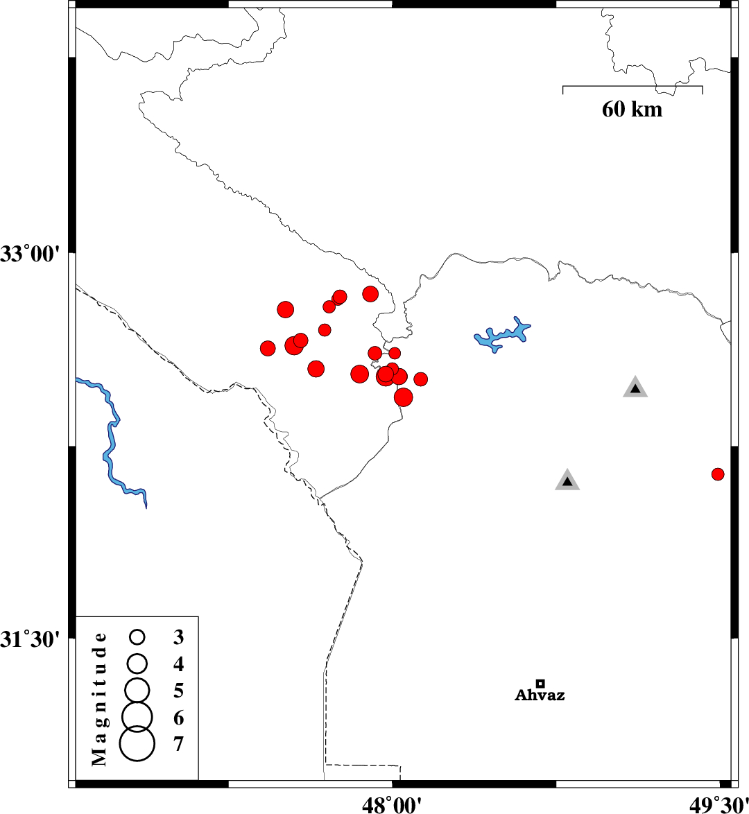 | 2014/10/24 | 11:10:58.9 | 14:40:58.9 | 32.78 | 47.51 | 18 | ML3.4 | Ilam Province, 17 km South of Abdanan | ||