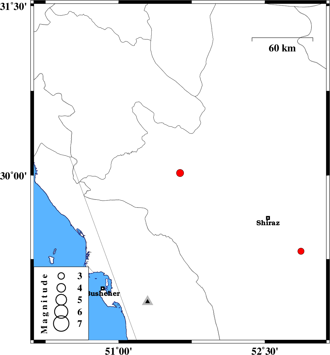 2014/10/06 | 01:48:20.6 | 05:18:20.6 | 29.32 | 52.87 | 14 | ML3 | Fars Province, 62 km South of Marvdasht |