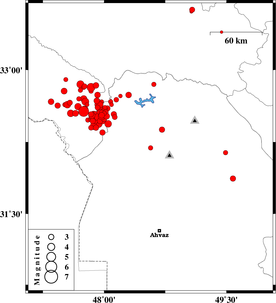 2014/10/16 | 02:33:44.9 | 06:03:44.9 | 32.5 | 47.94 | 14 | ML3.1 | Ilam Province, 39 km West of Andimeshk | ||