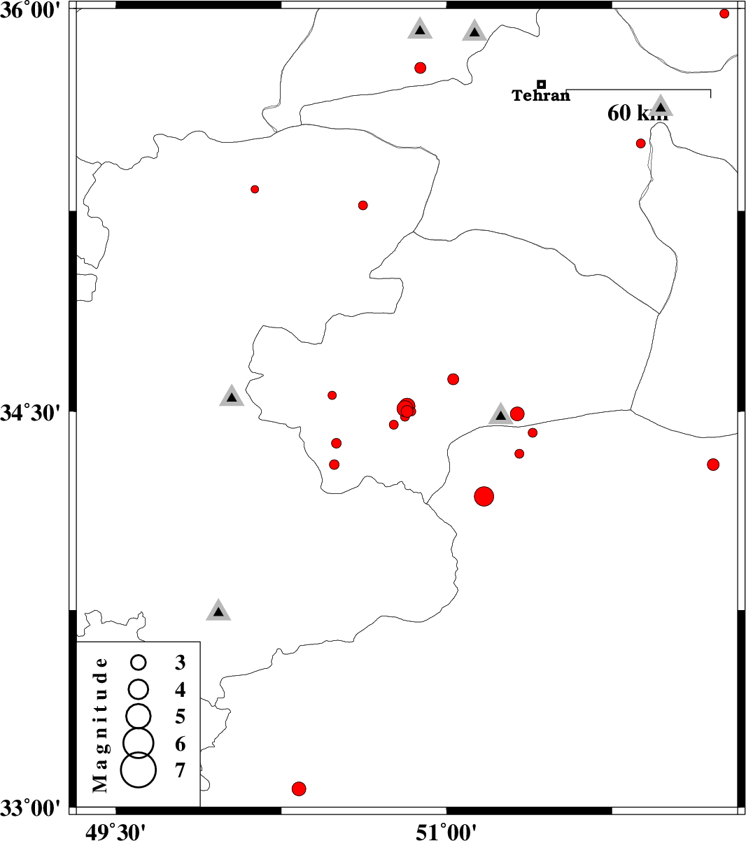2014/10/17 | 13:17:39.9 | 16:47:39.9 | 34.3 | 50.49 | 15 | ML2 | Qom Province, 43 km North of Mahallat | ||