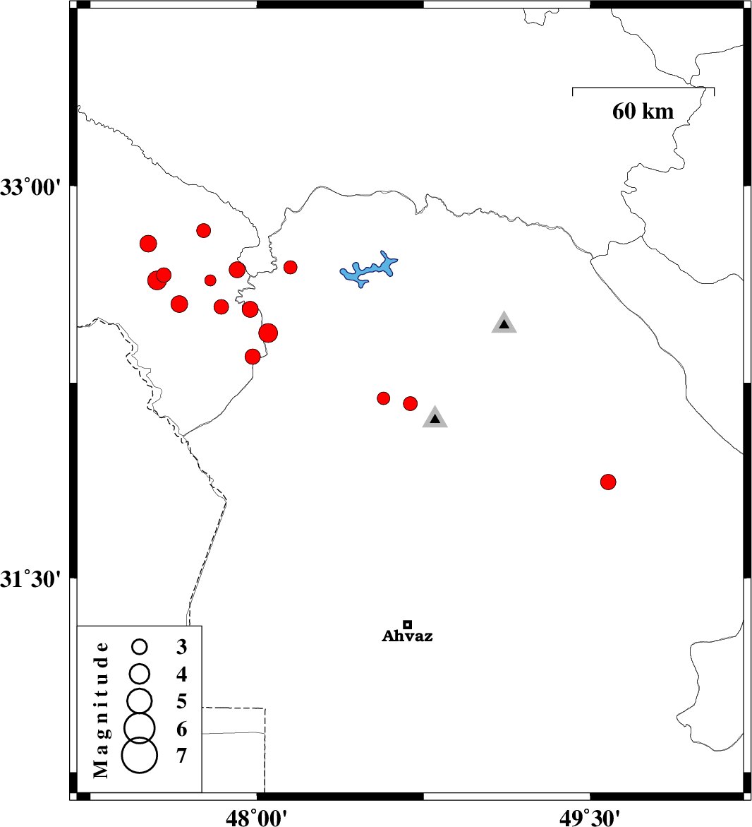 | 2014/10/29 | 13:35:33.9 | 17:05:33.9 | 32.19 | 48.57 | 15 | ML2.6 | Khoozestan Province, 30 km East of Shush | ||