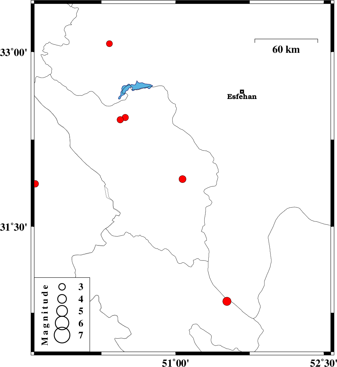 2014/10/10 | 22:47:32.9 | 02:17:32.9 | 33.07 | 50.33 | 14 | ML2.8 | Esfahan Province, 16 km South of Khvansar |