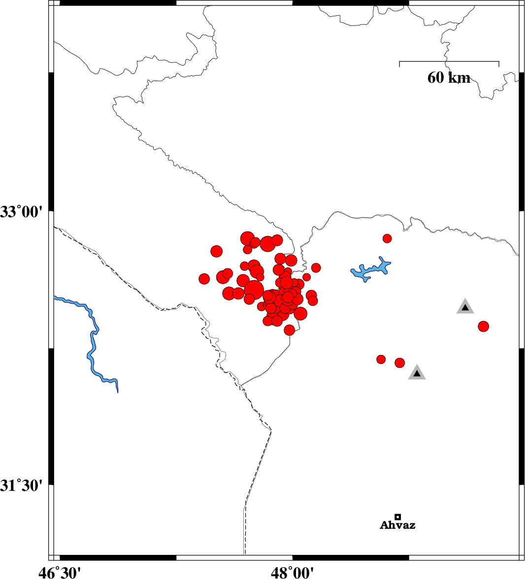 2014/10/27 | 06:08:02.2 | 09:38:02.2 | 32.64 | 47.79 | 18 | ML2.2 | Ilam Province, 50 km East of Dehloran | ||