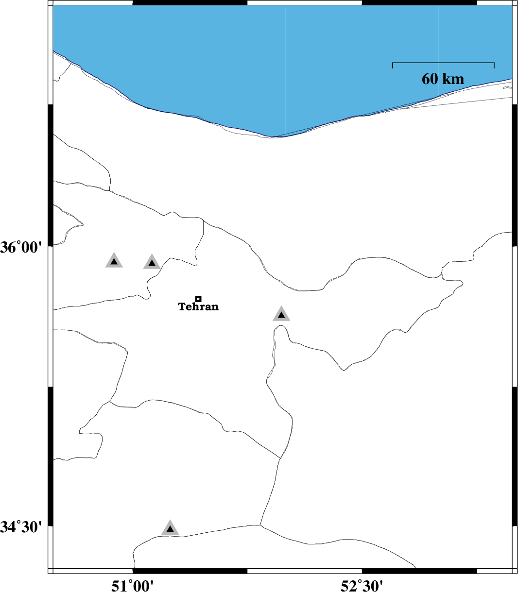 | 2014/11/13 | 19:01:24.8 | 22:31:24.8 | 35.77 | 51.98 | 14 | ML1.6 | Tehran Province, 10 km Damavand | ||