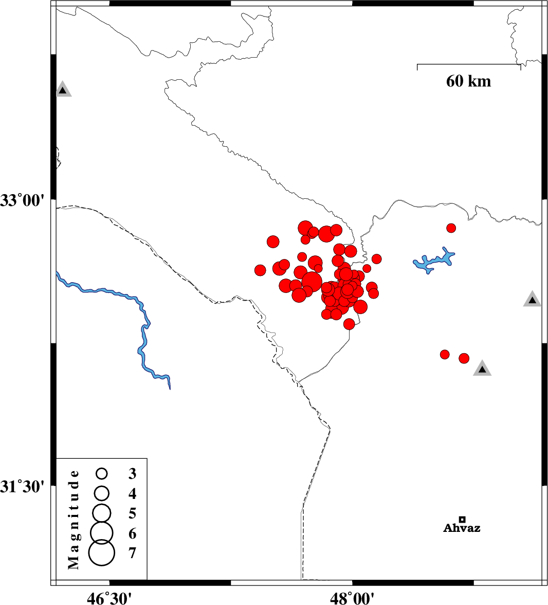 | 2014/10/15 | 14:12:05.3 | 17:42:05.3 | 32.5 | 47.92 | 17 | ML3.6 | Ilam Province, 41 km West of Andimeshk | ||