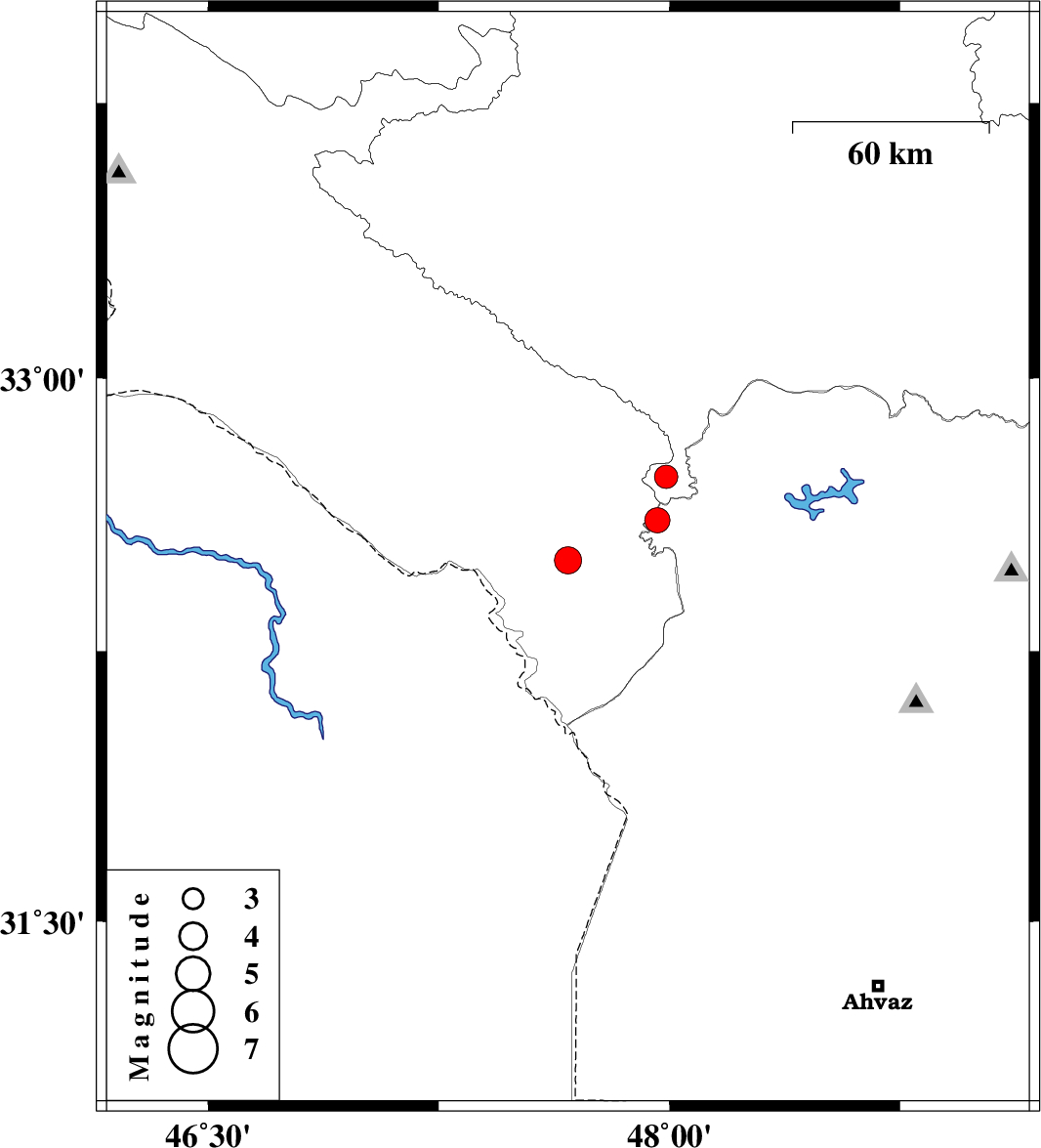 | 2014/11/14 | 01:12:48.4 | 04:42:48.4 | 32.5 | 47.67 | 15 | ML3.9 | Ilam Province, 44 km South-East of Dehloran | ||