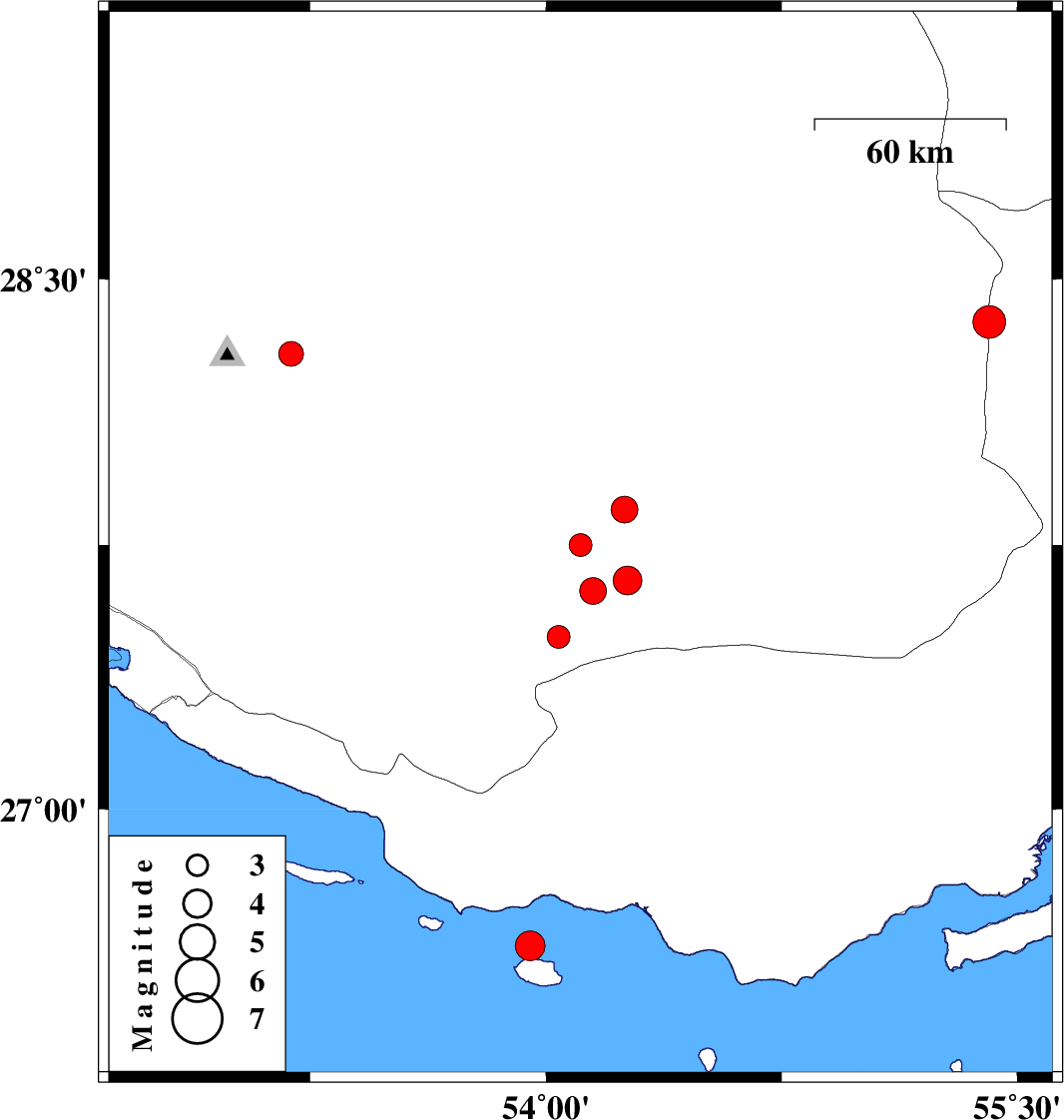 2014/11/13 | 00:39:01.8 | 04:09:01.8 | 26.61 | 53.95 | 14 | ML4.3 | Persian Gulf, 90 km West of Bandar-e lengeh | ||