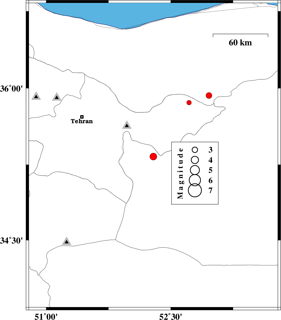 2014/11/18 | 15:22:50.4 | 18:52:50.4 | 35.93 | 52.96 | 14 | ML3.3 | Mazandaran Province, 23 km South of Pol-E-Sefid |