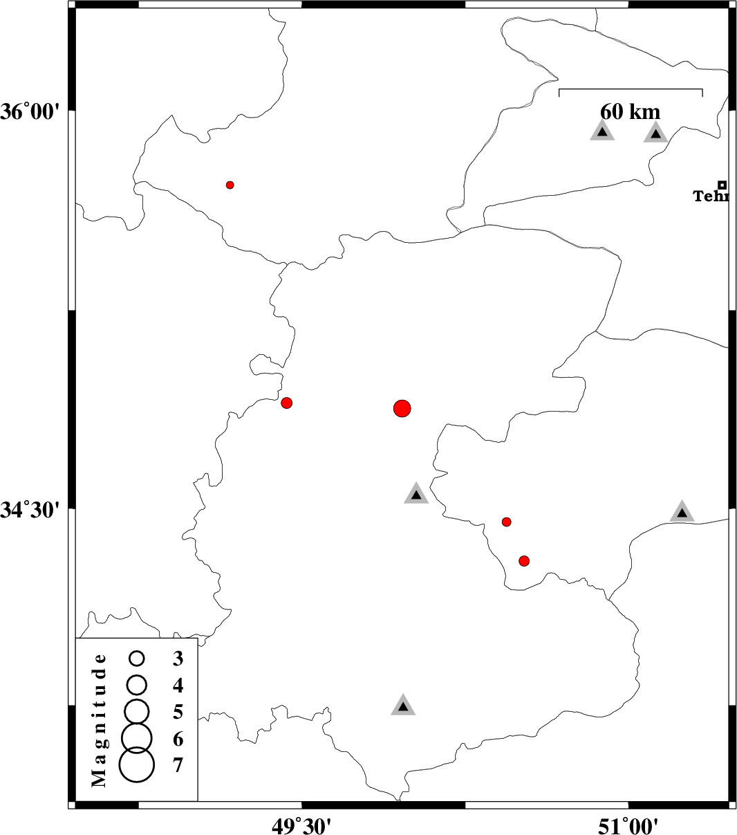 | 2014/11/28 | 08:13:57.9 | 11:43:57.9 | 34.88 | 49.96 | 14 | ML3.5 | Markazi Province, 21 km North of Tafresh | ||