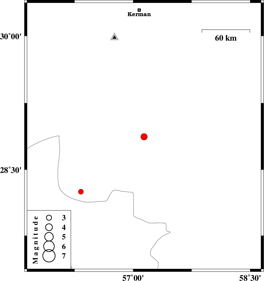 | 2014/11/29 | 03:20:33.5 | 06:50:33.5 | 28.87 | 57.14 | 14 | ML3.8 | Kerman Province, 63 km North-West of Jiroft |