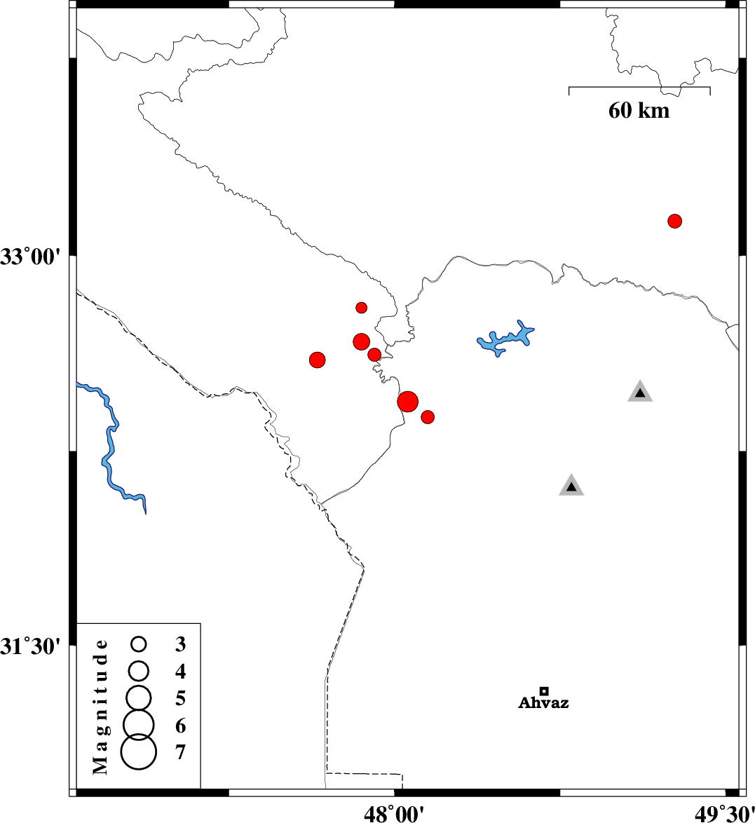 | 2014/11/25 | 13:04:42.2 | 16:34:42.2 | 32.67 | 47.85 | 14 | ML3.4 | Ilam Province, 55 km East of Dehloran |