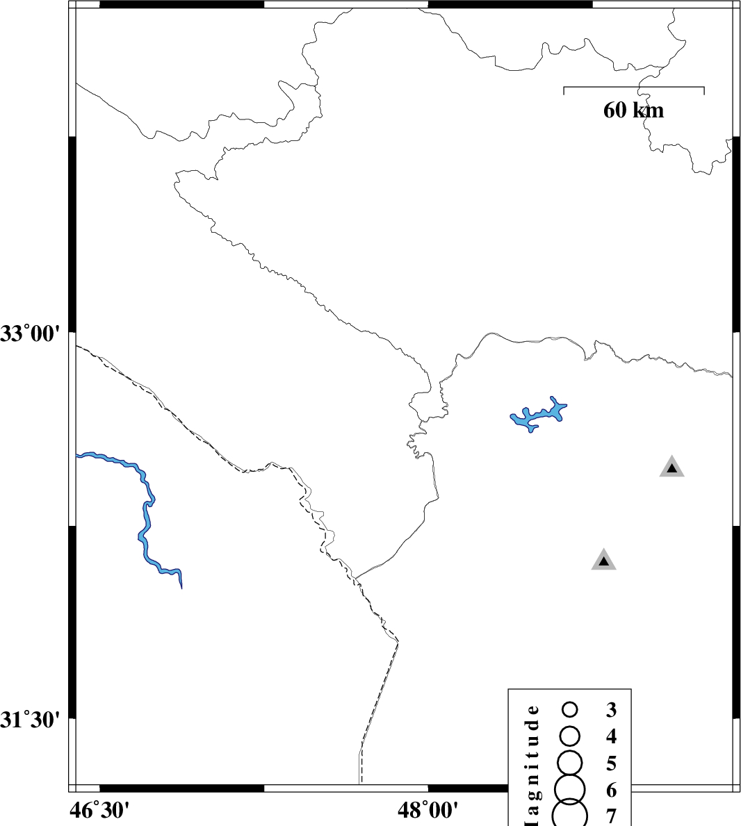 | 2014/11/25 | 13:04:42.2 | 16:34:42.2 | 32.67 | 47.85 | 14 | ML3.4 | Ilam Province, 55 km East of Dehloran |