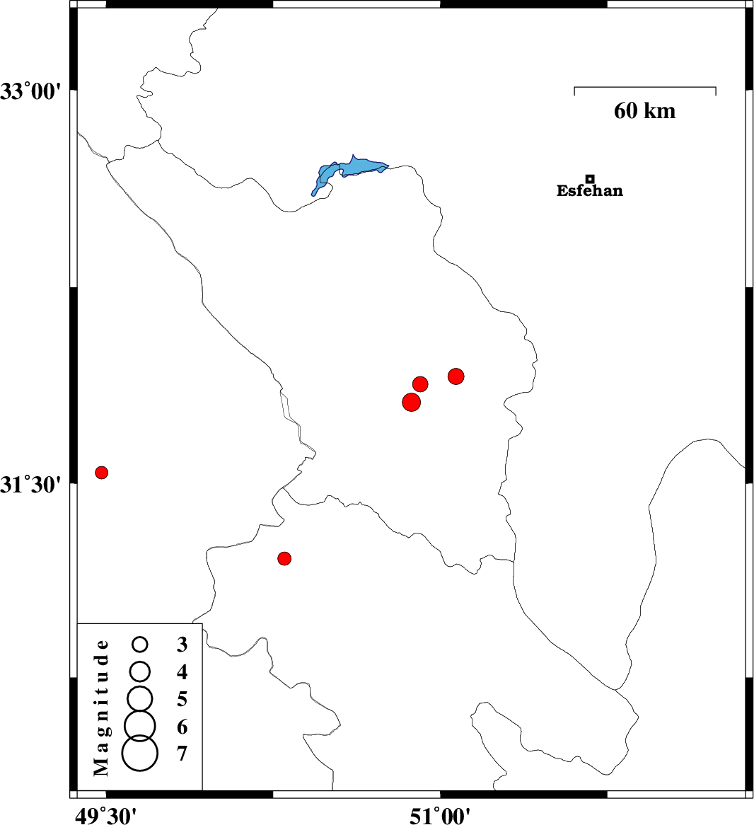 2014/11/04 | 13:04:16.7 | 16:34:16.7 | 31.91 | 51.07 | 14 | ML3.3 | Chaharmahal Bakhtiari Province, 21 km West of Borujen |