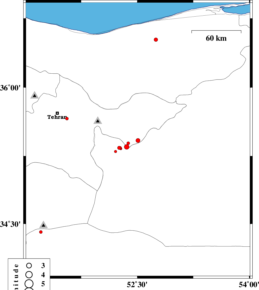 2014/12/03 | 18:36:22.5 | 22:06:22.5 | 35.34 | 52.27 | 15 | ML1.8 | Semnan Province, 15 km North of Garmsar | ||