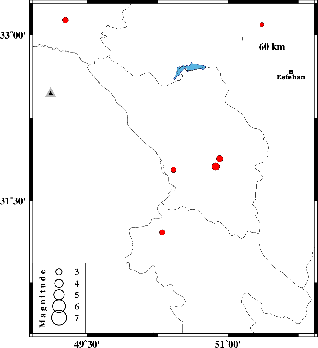 2014/12/04 | 13:33:46.8 | 17:03:46.8 | 33.09 | 51.36 | 14 | ML2 | Esfahan Province, 50 km North of Najafabad | ||