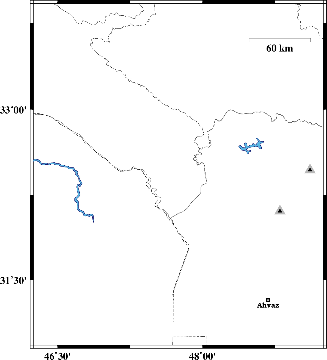 2014/11/14 | 01:12:48.4 | 04:42:48.4 | 32.5 | 47.67 | 15 | ML3.9 | Ilam Province, 44 km South-East of Dehloran | ||