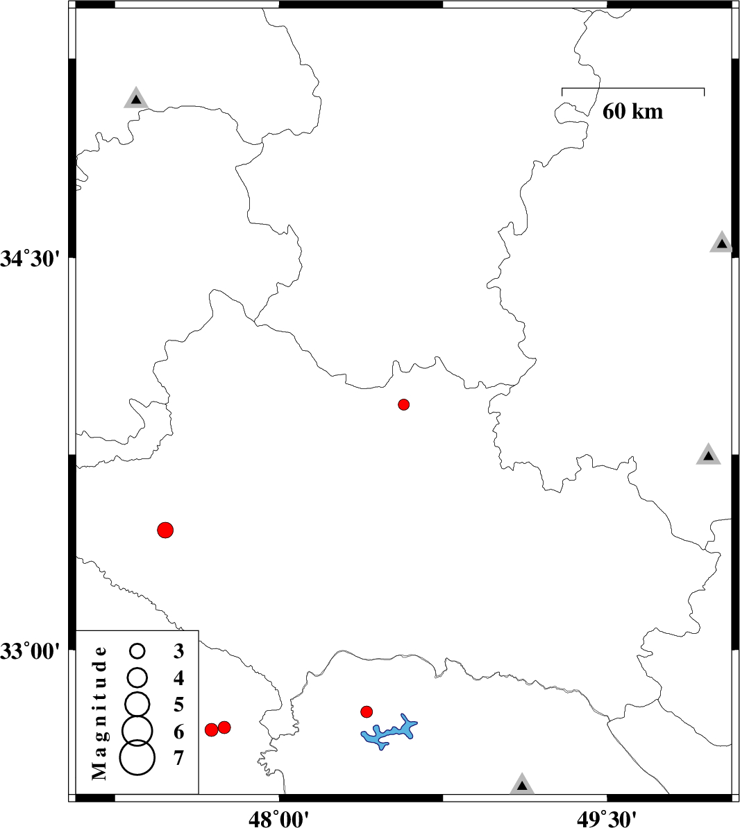 | 2014/12/11 | 19:19:39.3 | 22:49:39.3 | 33.94 | 48.57 | 34 | ML2.3 | Lorestan Province, 18 km West of Borujerd | ||