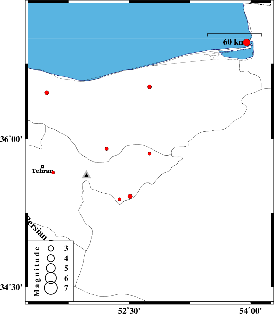 | 2014/12/05 | 02:49:29.8 | 06:19:29.8 | 36.96 | 53.95 | 15 | ML4 | Caspian Sea, 13 km West of Bandar-e torkaman | ||