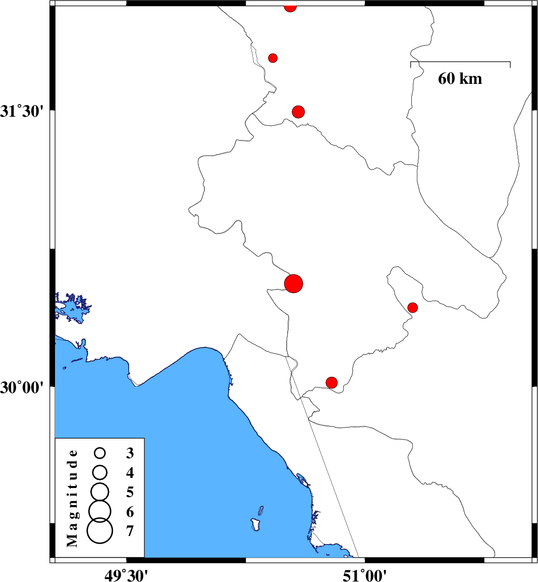 2014/12/12 | 20:45:42.3 | 00:15:42.3 | 30.56 | 50.55 | 14 | ML5.2 | Kohkiluieh va boyerahmad Province, 26 km South of Dehdasht | ||