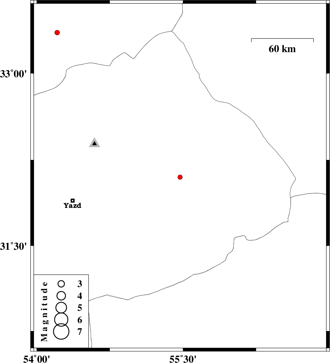 | 2014/12/05 | 09:41:04.6 | 13:11:04.6 | 32.1 | 55.47 | 14 | ML2.1 | Yazd Province, 55 km North of Bafq | ||