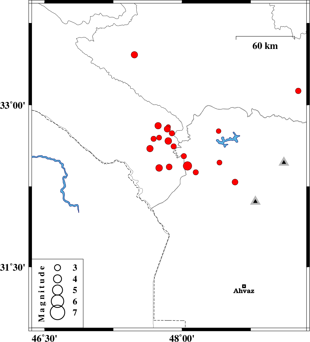 2014/12/10 | 02:14:19.4 | 05:44:19.4 | 32.69 | 47.69 | 43 | ML2.7 | Ilam Province, 40 km East of Dehloran | ||