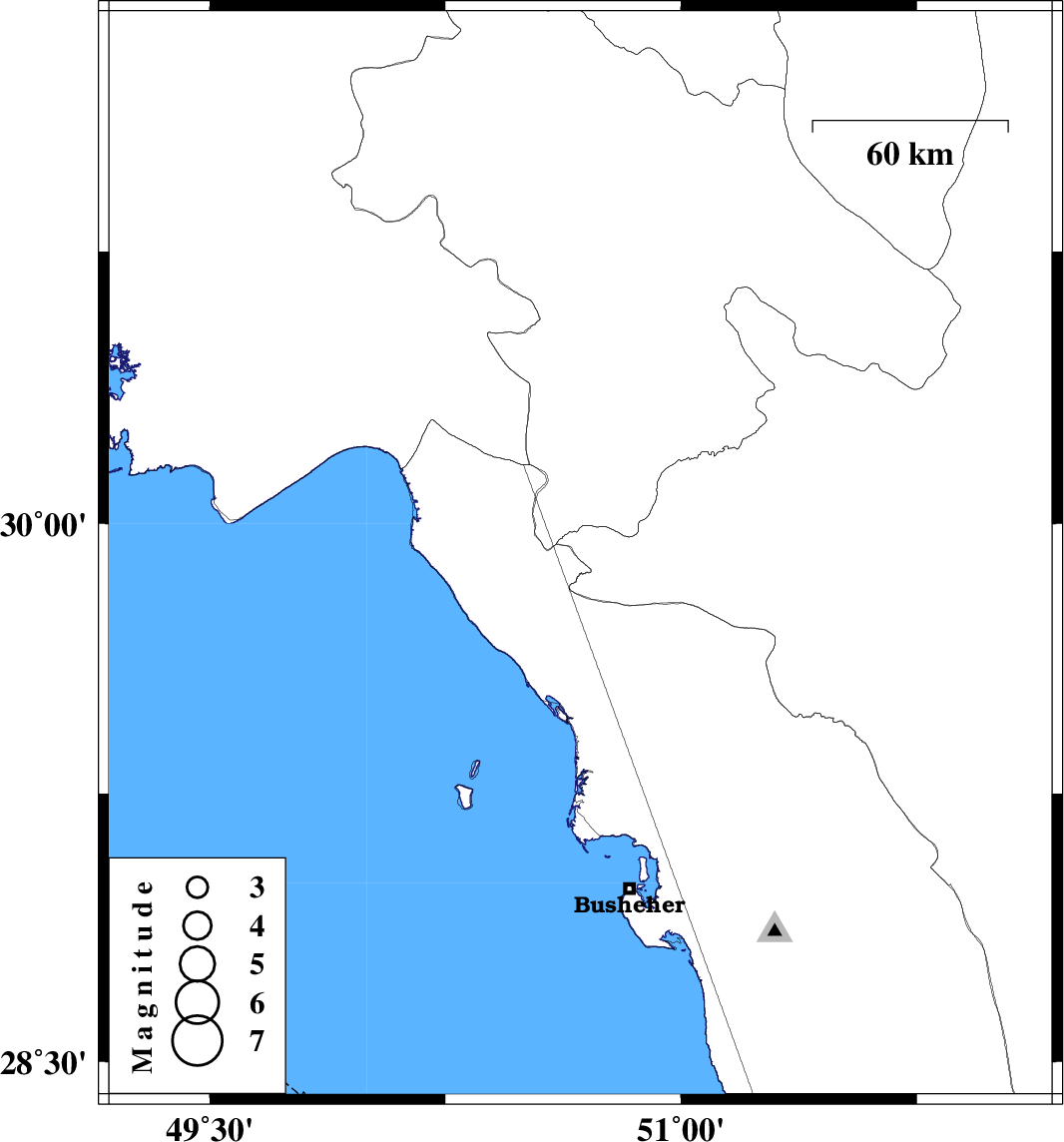 | 2014/12/21 | 09:42:44.1 | 13:12:44.1 | 29.91 | 50.68 | 14 | ML3 | Fars Province, 40 km North-East of Bandar-e genaveh |