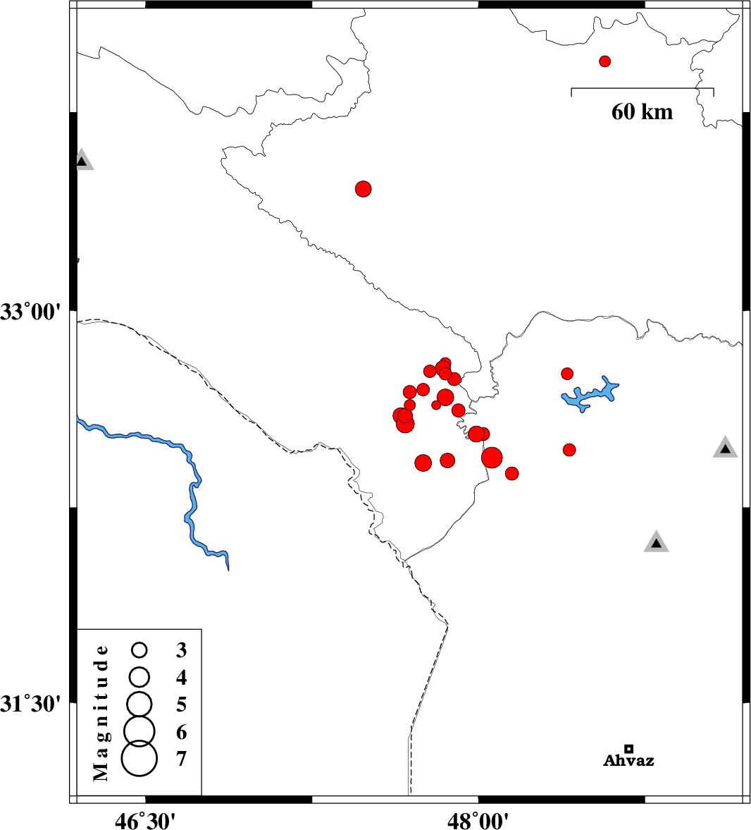 | 2014/11/25 | 13:04:42.2 | 16:34:42.2 | 32.67 | 47.85 | 14 | ML3.4 | Ilam Province, 55 km East of Dehloran |
