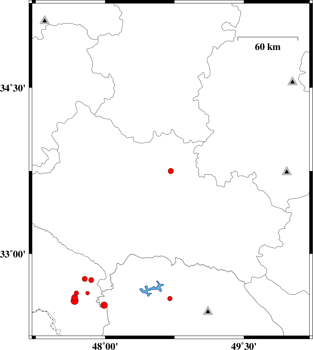 2014/12/20 | 01:12:11.2 | 04:42:11.2 | 32.76 | 47.85 | 14 | ML2.6 | Ilam Province, 45 km South-East of Pol-e dokhtar | ||