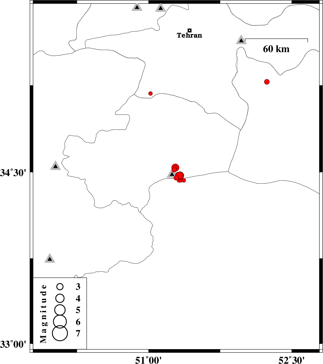 | 2014/12/25 | 16:55:37.1 | 20:25:37.1 | 35.18 | 51.02 | 36 | ML1.9 | Tehran Province, 33 km South of Robatkarim | ||