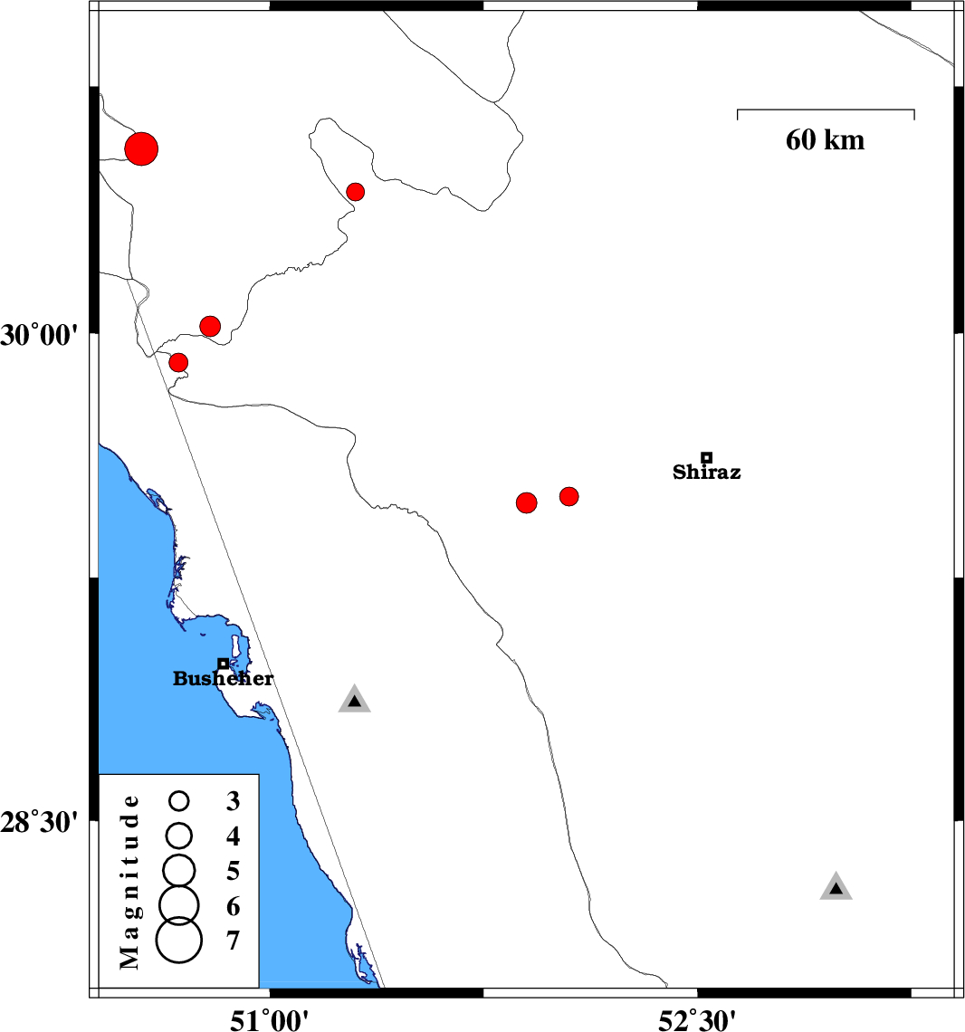 | 2014/12/03 | 09:41:26.2 | 13:11:26.2 | 29.5 | 52.05 | 15 | ML2.9 | Fars Province, 40 km South-East of Kazerun |