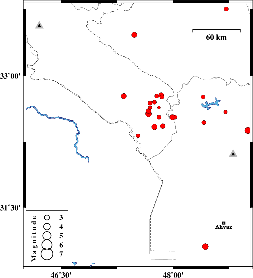 | 2015/01/04 | 16:25:38.8 | 19:55:38.8 | 32.32 | 47.53 | 15 | ML2.4 | Ilam Province, 49 km South-East of Dehloran | ||