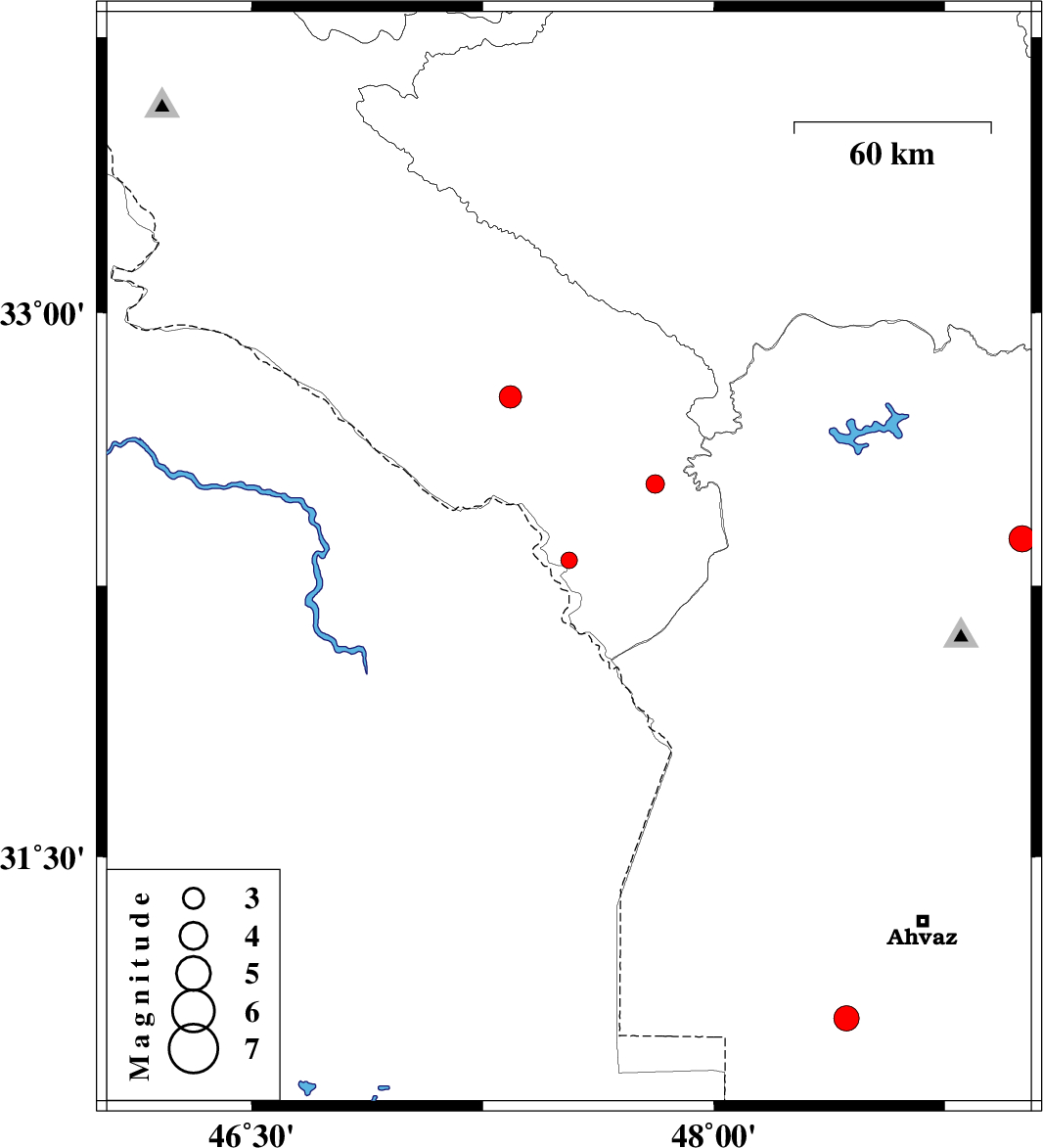 | 2015/01/04 | 16:25:38.8 | 19:55:38.8 | 32.32 | 47.53 | 15 | ML2.4 | Ilam Province, 49 km South-East of Dehloran | ||