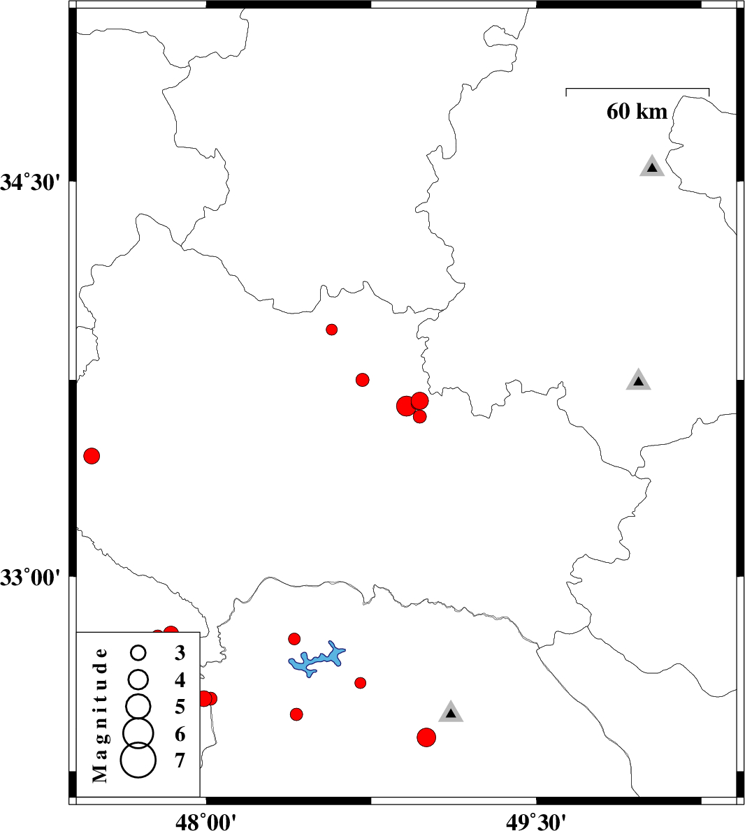 | 2014/12/11 | 19:19:39.3 | 22:49:39.3 | 33.94 | 48.57 | 34 | ML2.3 | Lorestan Province, 18 km West of Borujerd | ||