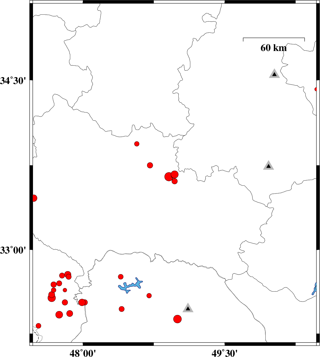 2014/12/12 | 18:10:45.5 | 21:40:45.5 | 32.78 | 47.84 | 15 | ML3.1 | Ilam Province, 43 km South-East of Pol-e dokhtar | ||