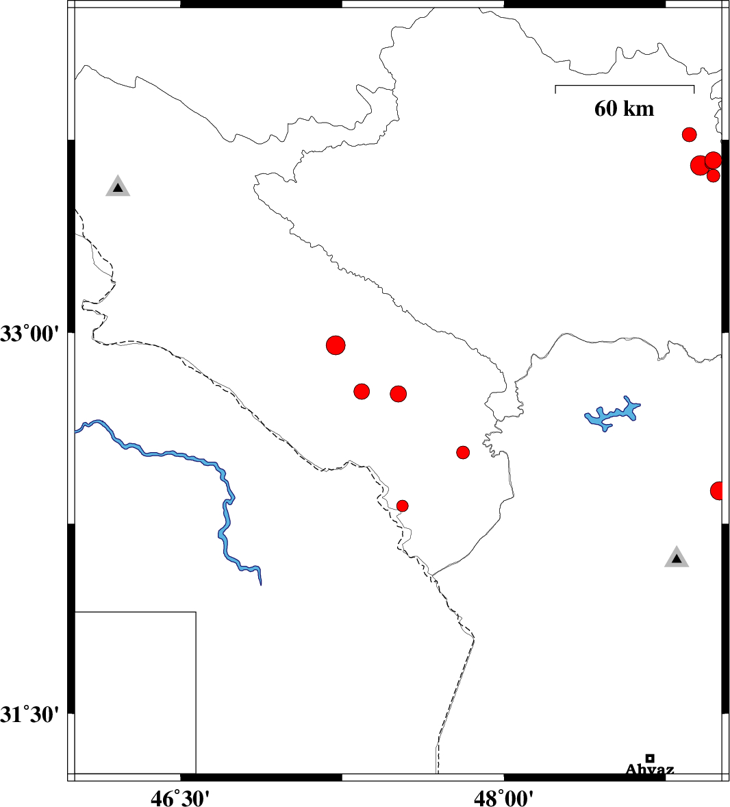 | 2015/01/05 | 02:37:49.2 | 06:07:49.2 | 32.95 | 47.22 | 17 | ML3.9 | Ilam Province, 21 km South of Darreh Shahr | ||
