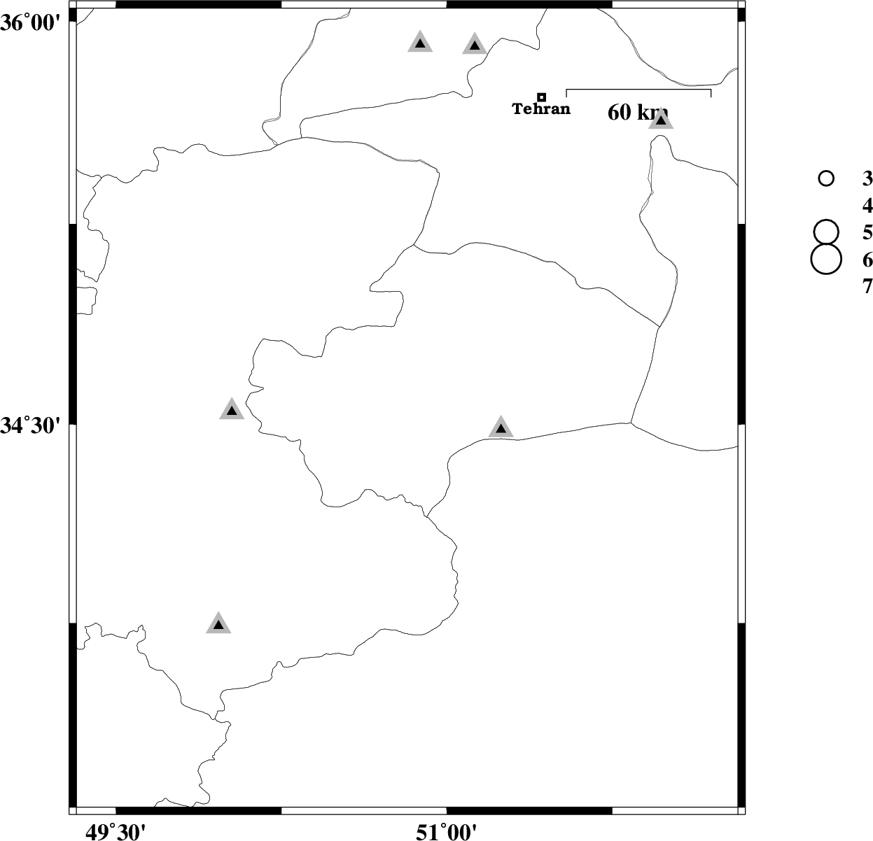 2015/01/05 | 08:07:11.5 | 11:37:11.5 | 35.73 | 51.61 | 14 | ML1.8 | Tehran Province, 17 km East of Tajrish |